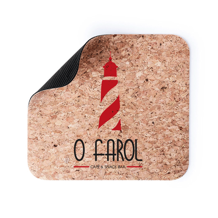 Tapete de Rato em Cortiça Natural. Base antideslizante. Tamanho: 21.5 x 19.5cm. Com personalização de logotipo.